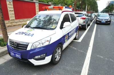郑州街头没有车牌且悬挂警灯上路行驶的行政执法车
